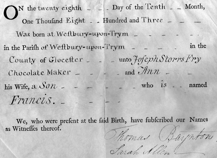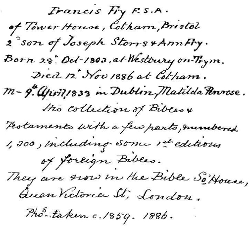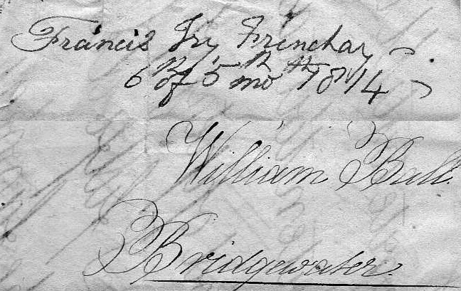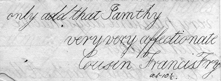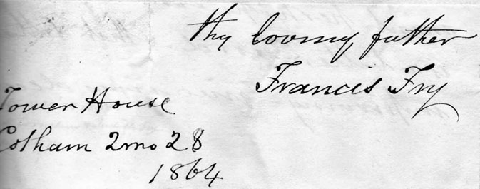 The above (right) is the writing of my Grandfather, Francis Fry, 1856.
