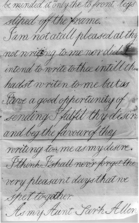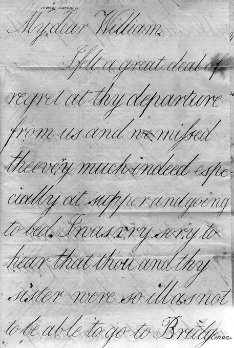 The following letter from Francis Fry, aged 10, to his cousin William Ball, is written in very large script - each page being approx A4 size..!