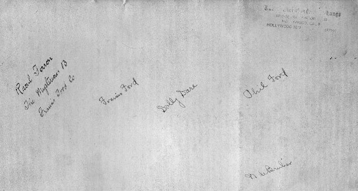 The writing, left, reads "Raoul Ferron, The Mysterious 13, Francis Ford Co." (Nigel played the part of Raoul Ferrar in the film |