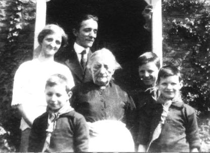 In this photograph, taken on a visit to England, Francis is seen with his mother, Louisa, who is by now living at Westbourne Terrace, Frenchay. [Note the folding bellows camera] Franciss sister, Minnie, is seen above with her three children. Minnie was married at St John Baptist, Frenchay, in July 1910, to John Davis Fox, a Journeyman Tailor of Frenchay. They emigrated to America, but Minnie returned to Frenchay after the death of her husband. |