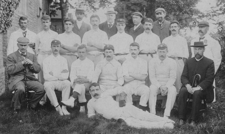 Back Row, left to right - HJ Wadlow (Hon Sec), TS Perham, FG Smith, R King, Middle row - F Beer Umpire, A Greenway, R Rawlins, EH Coombes, AE Winstone, C Bracey, W Adams, R Murphy Umpire Front row - WHP Jenkins, A Humphries, H Humphries, HE Hibbs Capt, WG Truebody, J Fox Vice-Capt, Rev W Brook Hon Sec Front - AW Nash |