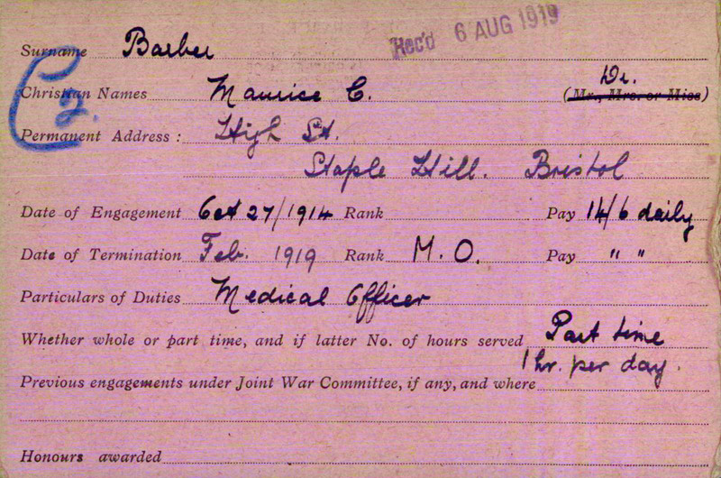 Details of Dr Barber's service at Cleve Hill Hospital...